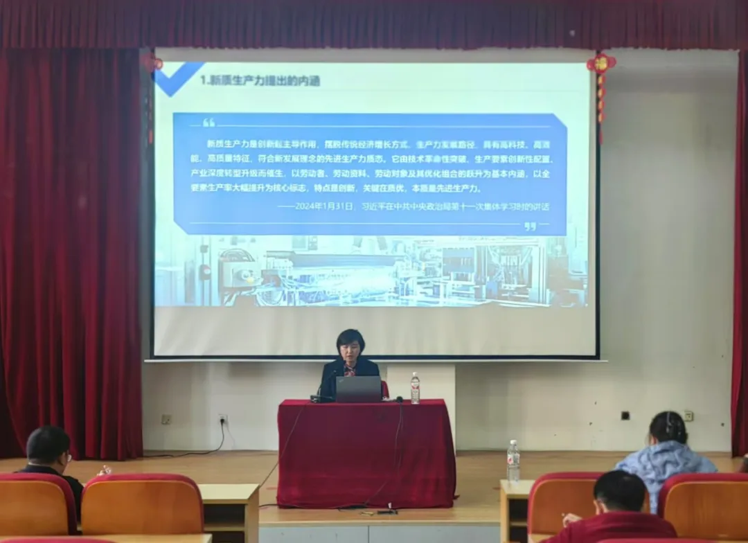 岳宏杰副院长以《加快发展新质生产力 扎实推动高质量发展——深入学习领会党的二十届三中全会精神》为题作专题报告,从新质生产力的提出背景、新质生产力的科学内涵、发展新质生产力的着力点、高校师生的使命担当四个方面,为学院全体师生党员作了全面系统的解读和宣讲。岳宏杰副院长的讲解主旨鲜明、聚焦重点、见解深刻,理论分析透彻、讲述直观到位,对学院全体党员结合具体工作实践深入学习贯彻好全会精神提供了参考。