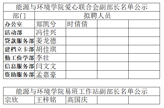为加强学院学生干部队伍建设,充分发挥共青团作用,经个人申报,组织考核,院团委选拔,现将Ky开元集团学生组织副部长名单予以公示。