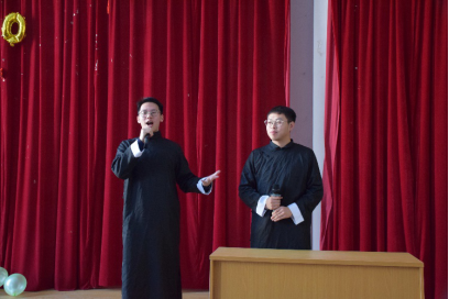 研一的同学发挥自身所长,经过近一个月紧张的排练准备,呈现出了一台精彩绝伦节目表演。演出中不仅有“阿莫西林”乐队带来的欢快歌曲、“红高粱模特队”飒爽的舞姿,更有相声、小品等语言类节目将联欢会推向高潮。其中教师代表韩智书记也为大家带了一首歌曲《朋友》,那优美动人的旋律让人陶醉其中。