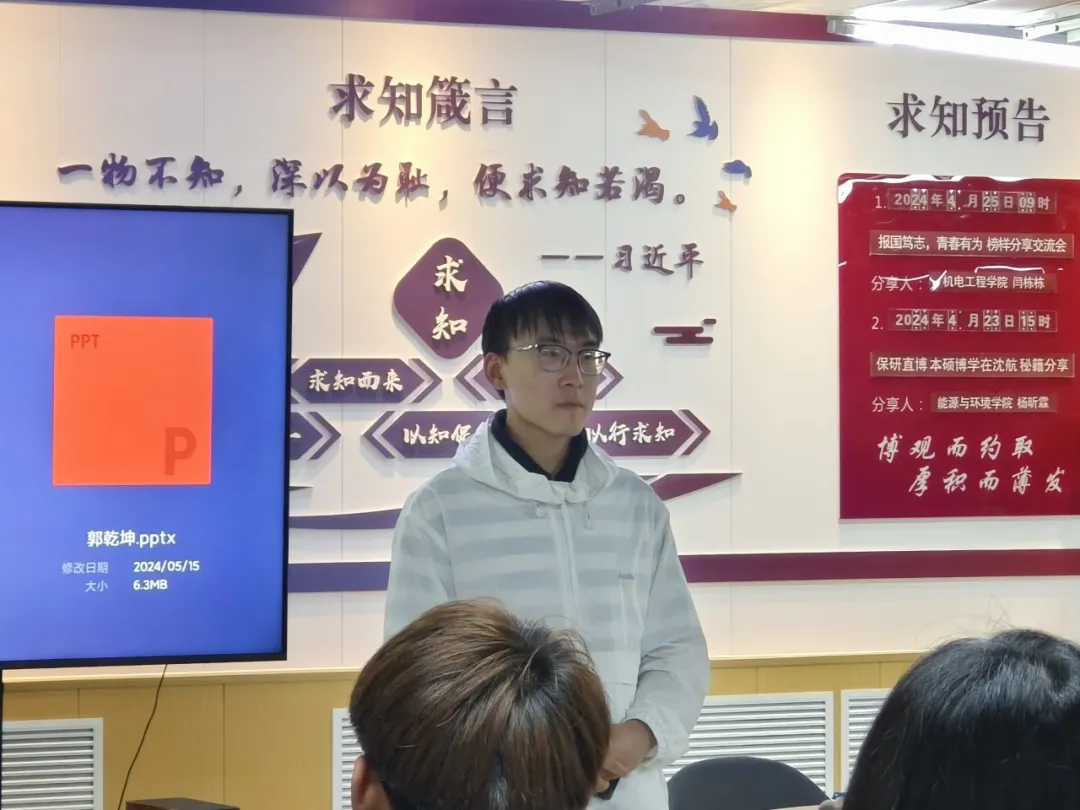 为发挥榜样育人作用,5月15日,Ky开元集团于校一站式社区“求知坊”开展榜样经验分享会,邀请到2024年“全国大学生年度人物”获得者闫栋栋、学院考研全员上岸寝室成员杨昕霖、韩硕、郭乾坤、任锦晨四名优秀学长向2023级新生分享学习经验。分享会由23级辅导员黄茉老师主持。